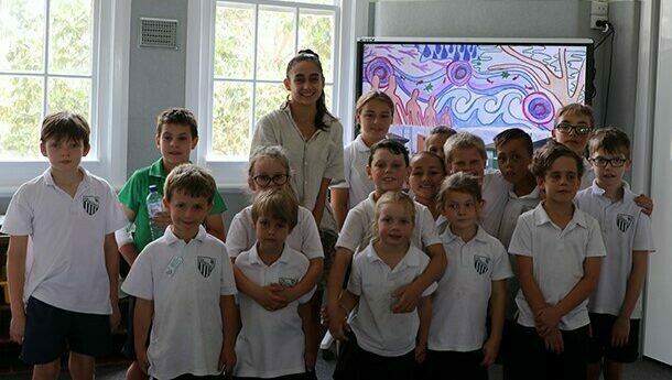 In late 2019, we worked with Indigenous students from Mayfield West Demonstration School to design an amazing mural to celebrate their cultural knowledge around the value of water and the continuous connection to this precious resource.
