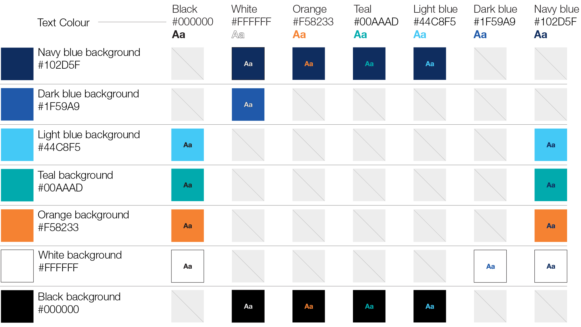 Certain colours offer different levels of contrast, see below the accessibility colour palette.