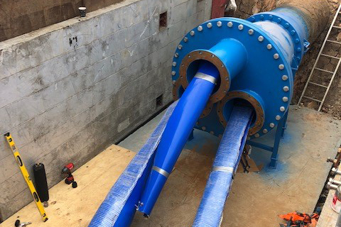 “We then enlisted the help of Interflow to install the Primus Line technology. This involved a week-long process of concurrently threading three flexible, reinforced liners into the water main from these trenches, and inflating them using compressed air.
